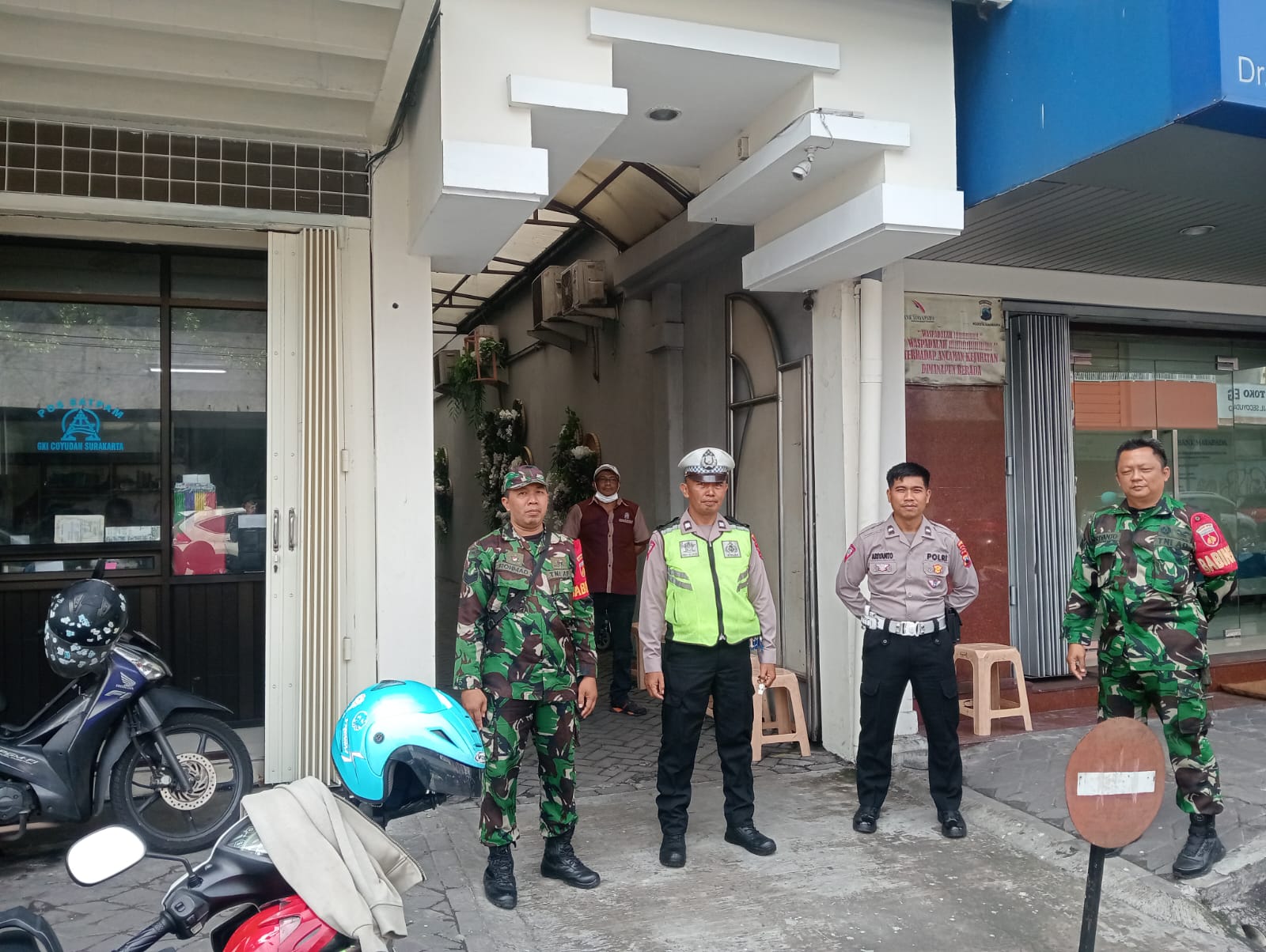 Babinsa Kelurahan Jayengan Koramil 03 Serengan Kodim 0735 Surakarta, Serka Priyanto dan Serka Rohmad laksanakan pengamanan guna memberikan keamanan dan kenyamanan dalam menjelang Natal dan Tahun baru 2025 umat Nasrani di GKI Coyudan Jayengan Serengan Kota Surakarta, Minggu (15/12/2024) pukul 07.00 WIB.