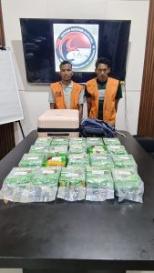 Dari hasil penggeledahan, petugas menemukan 20 bungkus plastik teh Cina berwarna hijau yang diduga berisi sabu. Sepuluh bungkus ditemukan di dalam tas gunung berwarna biru dan sepuluh bungkus lainnya di dalam koper pakaian berwarna pink. Total berat bruto keseluruhan mencapai ±21.142 gram. Selain itu, turut diamankan dua unit telepon genggam Android yang diduga digunakan untuk komunikasi dalam transaksi.